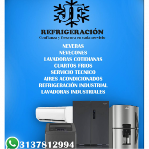 "JF REFRIGERACION Y AIRES ACONDICIONADOS es el lugar ideal para que contrates nuestros servicios, llevamos mas de 20 a\u00f1os de experiencia como prestadores de servicio a supermercados, restaurantes, fabricas muy reconocidas de la ciudad de Manizales, caldas. Somos tecnicos certificados por el SENA y estamos en constante capacitaci\u00f3n"