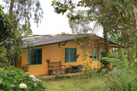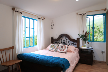 La casita Mostaza Y Celeste tiene todo para que te sientas feliz, abrigado, abrazado por el bosque y arrullado por la paz del silencio. Tiene dos dormitorios, el principal con baño privado. Tiene escritorio y área de trabajo, donde podrás enfocarte y potenciar tu lado más creativo. Desde la sala podrás ver los atardeceres más alucinantes. La cocina, totalmente equipada, te invita a recordar las recetas de mamá. Los corredores exteriores te invitan a contemplar el exhuberante paisaje.
