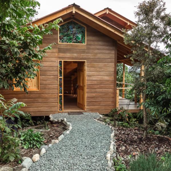 Recorre senderos y jardines para llegar al ensueño acogedor de mi hogar. Desde el balcón disfruta de la exuberancia del entorno natural que te ofrezco y de sobrecogedoras puestas de sol. Observa detenidamente la actividad de las aves en las copas de los árboles y experimenta un baño vital y de bosque sin igual. ACOMODACIÓN HASTA 6 PERSONAS EN PAREJA