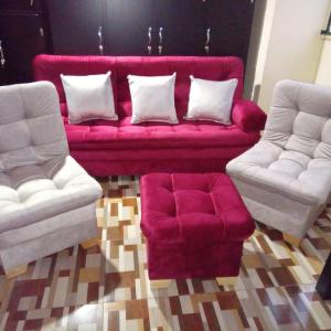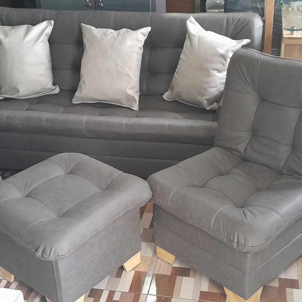 Juego de Sala conformado por un Sofa Cama de 1.80 mts x 1.10 , dos sillas reclinables y un puff, mesa de centro. Esta se realiza de forma personalizada, A gusto del cliente tanto en color como material de la Tela.
