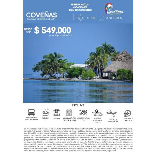 Embárcate en un emocionante tour a Coveñas con salida desde Medellín. Disfruta de playas paradisíacas, aguas cristalinas y la belleza natural de la región Caribe en una escapada inolvidable. Desde: $549.000