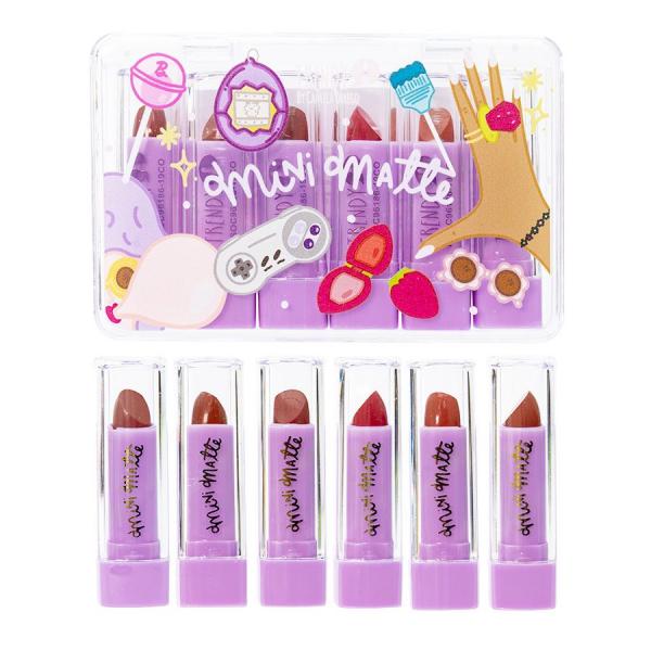 Kit x 6 mini labiales Son 6 labiales en barra con textura suave y ligera. Son muy pigmentados y de excelente calidad. Vienen en colores nudes, neutros, rosas y rojos.