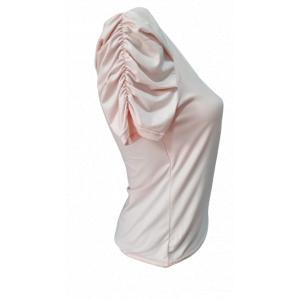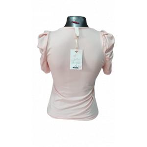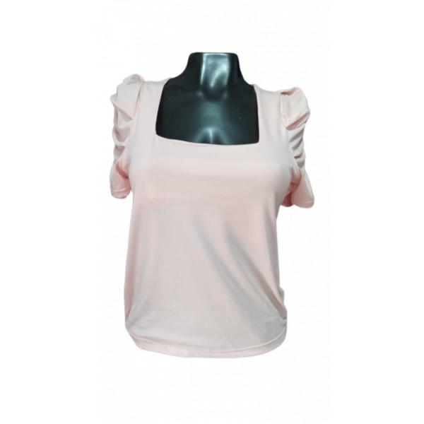 Blusa de manga corta con elegantes frunces en los hombros. Su diseño sofisticado y tejido suave realzan la silueta, ofreciendo un toque de elegancia a cualquier atuendo. Perfecta para combinar con faldas o pantalones, ideal para cualquier ocasión.