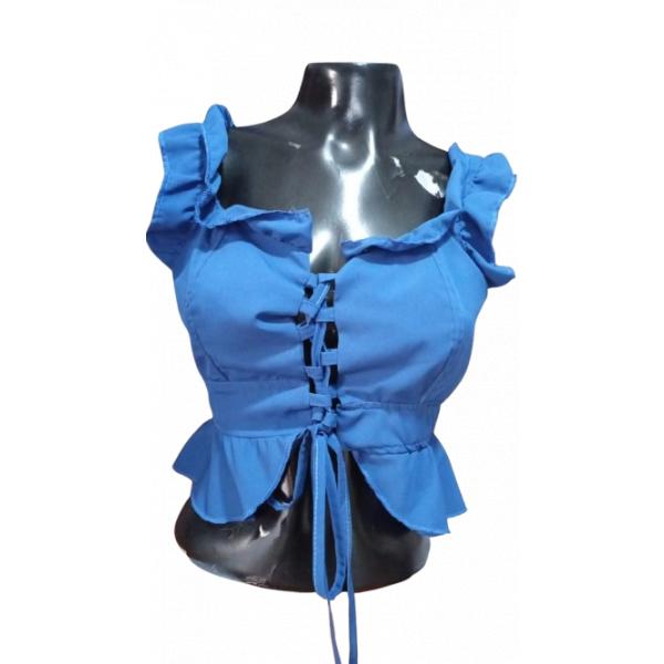 ¡Deslumbra con este top corsé azul eléctrico! Con un escote corazón y volantes coquetos, esta prenda acentúa tu figura con su cinta ajustable y espalda descubierta. Perfecto para cualquier ocasión que requiera glamour y sofisticación. ¡Hazlo tuyo y destaca con estilo!
