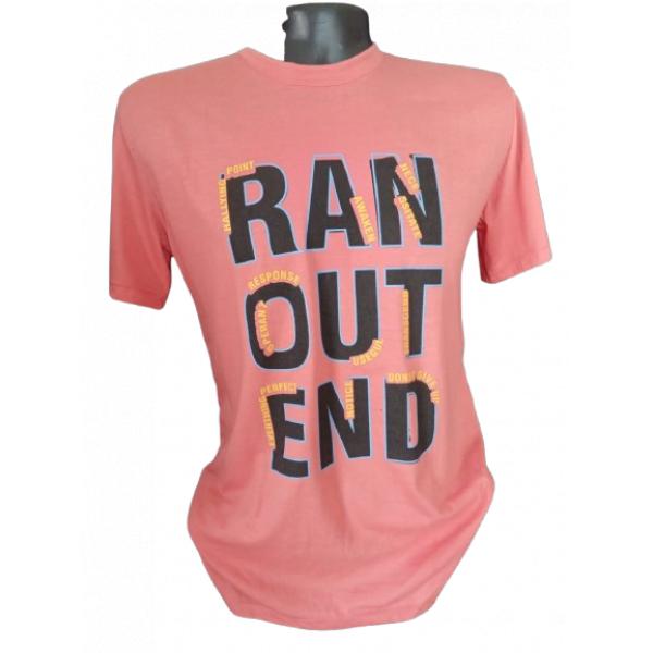 ¡Haz una declaración audaz con nuestra camiseta coral! Con letras en negro y amarillo que dicen “RAN OUT END”, esta prenda es perfecta para destacar. Su diseño moderno y vibrante es ideal para cualquier ocasión casual. ¡Añade un toque de estilo a tu guardarropa hoy mismo!