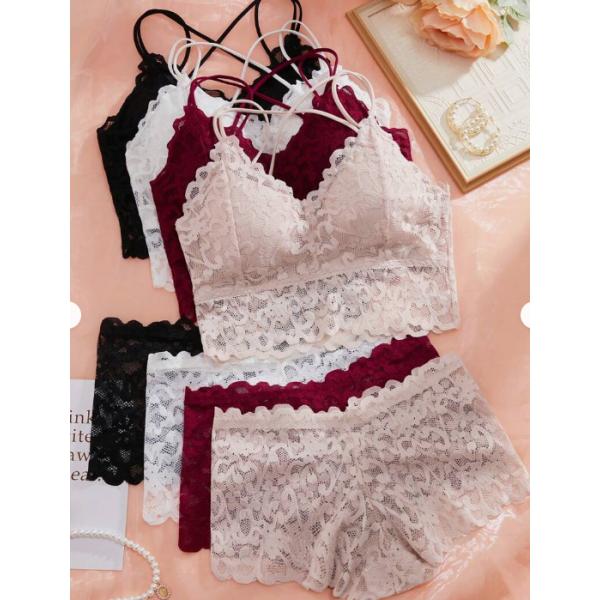 Luce sensual y elegante con este set de lencería de encaje. Disponible en blanco puro y negro con detalles rojos, cada pieza está diseñada para realzar tu belleza natural. ¡Perfecto para sentirte segura y deslumbrante en cualquier ocasión!