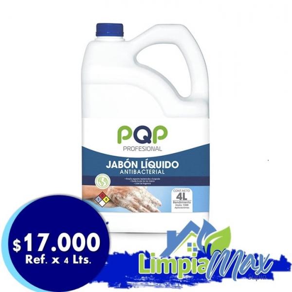 l jabón líquido antibacterial PQP PROFESIONAL esta formulado con un pH neutro y agentes humectantes que previenen la resequedad y ayudan a proteger la piel dejando una agradable sensación de suavidad. No contiene fragancia, ni deja olor residual en las manos. Es un producto listo para usar, biodegradable y libre de fosfatos. El precio varía de acuerdo a la presentación.