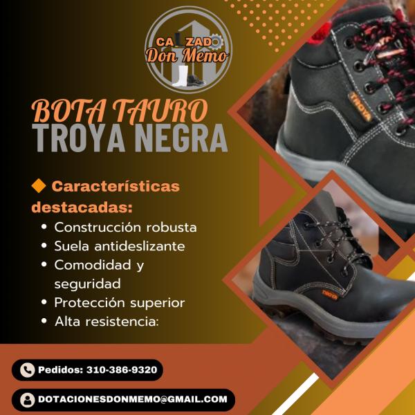 ¡Protege a tu equipo con la Bota Tauro Troya Negra! 👷♂👢 ¿Buscas calzado industrial confiable y resistente? La Bota Tauro Troya Negra es la elección perfecta para entornos laborales exigentes. 🔒 ✅Construcción robusta: Inyección directa al corte para mayor durabilidad. ✅Suela antideslizante: Poliuretano bidensidad, resistente a hidrocarburos. ✅Comodidad y seguridad: Forro transpirable y sobreplantilla anti fatiga. ✅Protección superior: Puntera de composite que soporta impactos de 200 Jules