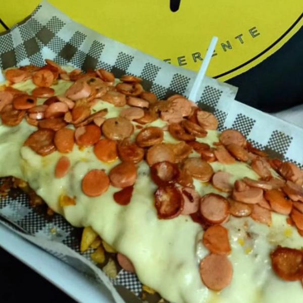 Salchipapa con papa a la francesa, salchicha, queso gratinado, chorizo, ripio y salsas. Manejamos 3 presentaciones: Personal, Duo y Familiar.
