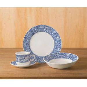 Vajilla Corona Blue Lace 4 Puestos 16 Pieza Material: Loza 4 plato pando 4 plato hondo 4 plato te 4 pocillo te Apto para microondas y lavavajilla. Aprobado para el uso en contacto con alimentos. Cumple con la norma de plomo y cadmio. Se garantiza que el esmalte no va a generar agrietamiento por cualquier cantidad de lavado con detergentes. Resistencia de la decoración a los detergentes.