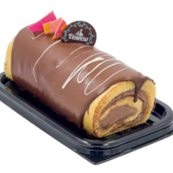Delicioso bizcocho de vainilla relleno con chocolate avellanado, suave arequipe y crujiente maní cubierto de chocolate.