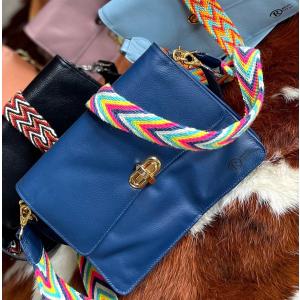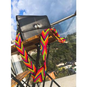 Un bolso diseñado para adaptarse a cada momento de tu día. Este elegante accesorio incluye dos correas intercambiables: una clásica en cuero, ideal para un look sofisticado, y otra con vibrantes tejidos estilo Wayú, perfecta para un toque casual y único.
