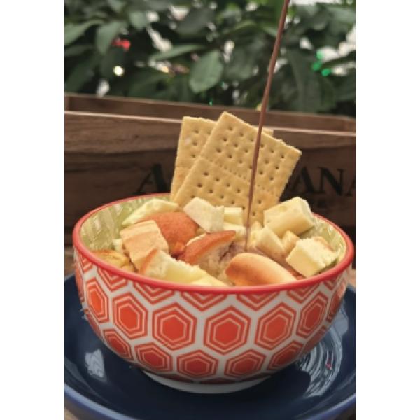 Bebida caliente con migas de galletas, pan, queso, etc.
