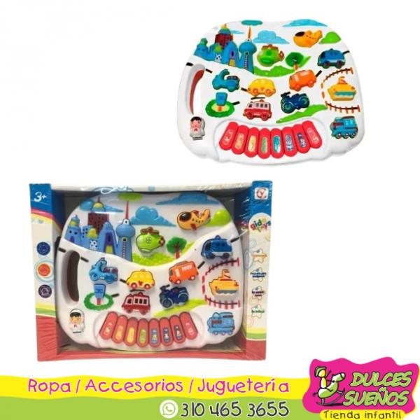 Un juguete didáctico esencial para tu bebé, trae los sonidos y los nombres de los diferentes medios de transporte, además tiene un piano con diferentes canciones,