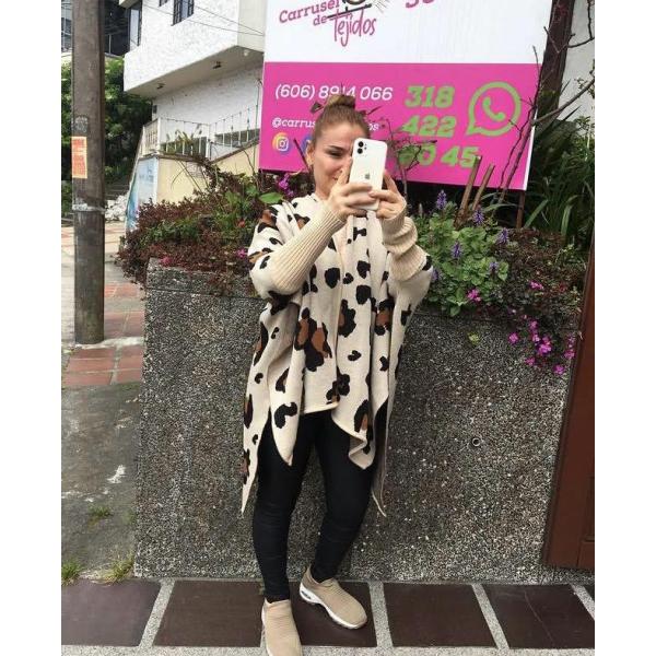 Ruana Animal print, Tejido tipo jaguar en lana tipo cachimir