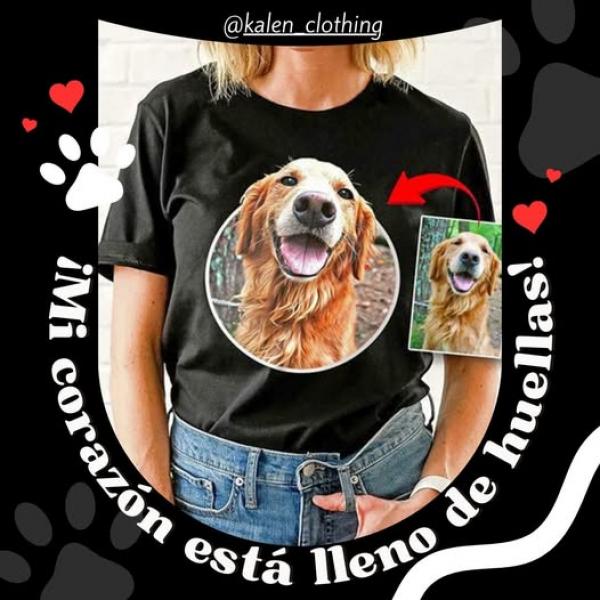 🔸 Material de alta calidad: Fabricada en algodón suave y transpirable, brindando comodidad durante todo el día. 🔸 Diseño exclusivo: Estampado con la imagen de tu mascota en alta resolución, dentro de un elegante marco circular. 🔸 Estilo versátil: Corte unisex y moderno, ideal para combinar con jeans, shorts o faldas.