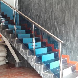 Pasamanos en acero inoxidable con vidrio templado en calibres: 6, 8, 10 mm.