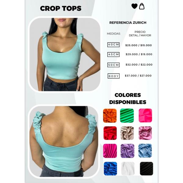 El Crop Top Zurich es esa prenda infaltable en tu armario: versátil, cómodo y con un diseño que realza tu silueta de forma natural. Confeccionado en tela suave y de excelente ajuste, es perfecto para combinar con jeans, faldas o pantalones de tiro alto. Su corte moderno y femenino lo convierte en la elección ideal para looks casuales o más atrevidos, según cómo lo combines.