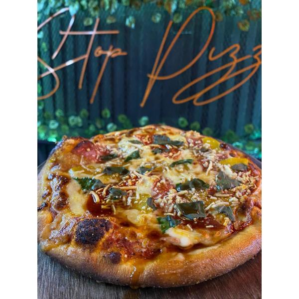 Es una explosion de sabores italianos que combina lo dulce y lo salado. Salami americano, pepperoni, durazno asados, albahaca fresca, queso mozzarella, queso parmesano, balsamico, salsa napolitana, nuestra masa de la casa.