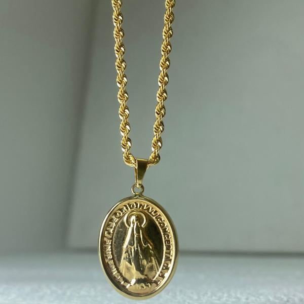 🌟 Cadena de Oro con Medalla de la Virgen 🌟 Una joya llena de fe, elegancia y protección espiritual. Esta cadena tipo cuerda, acompañada de una medalla de la Virgen en acabado dorado brillante, es el complemento perfecto para quienes desean llevar consigo una expresión de devoción y estilo.
