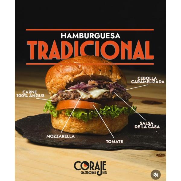 Hamburguesa tradicionalHamburguesaHamburguesasComida rapidaComidaRestauranteRestaurante manizalesManizalescomidas y bebidasRooftopCoraje