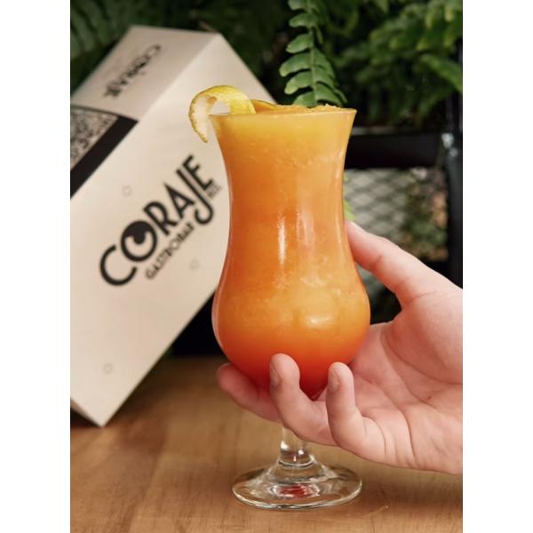 Coctel huracan hecho a base de ron viejo de caldas, zumo de naranja, granadina y zumo de maracuya.