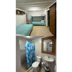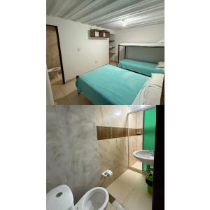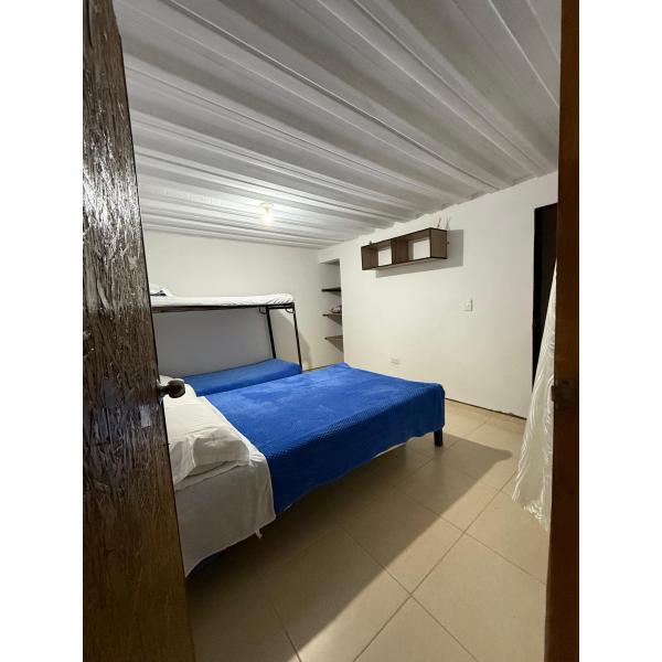 En las habitaciones familiares hay capacidad para 5px, 1 cama semidoble, 1 camarote y 1 cama nido, baño privado, toallas, desayuno tipo americano