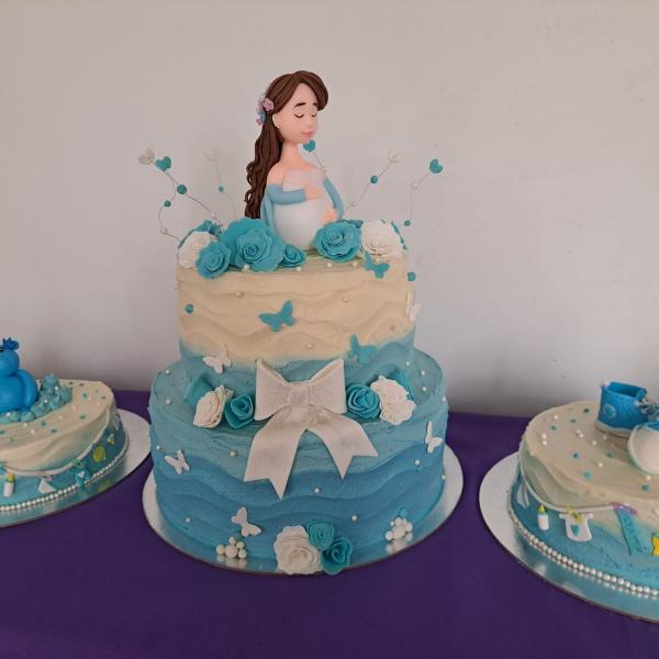 Dulzura y ternura en cada detalle. Esta hermosa torta de baby shower se diseña completamente a tu gusto: puedes elegir colores, figuras, flores, mariposas, zapatitos, ositos y más. Ideal para celebrar la llegada de un nuevo bebé con estilo, amor y mucho sabor.