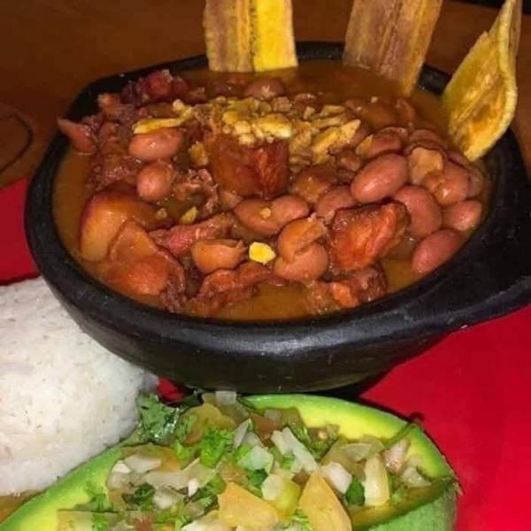Cazuela de Frijol Deléitate con este plato típico y lleno de sabor: frijoles acompañados de cerdo, res, chicharrón crocante, carne molida, chorizo, platanito frito, arroz, ensalada fresca y la bebida de la casa. ¡Una explosión de tradición en cada bocado!. El precio depende la elección de las proteinas.