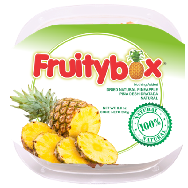 Mezcla de frutas deshidratadas con banano, piña, mango, arándano, coco y uvas. Pack x 50g Caja x 12