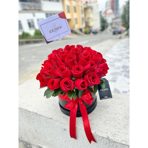 Caja elaborada con 50 rosas, fino follaje y complementos đč El color de la caja puede variar segĂșn la disponibilidad
