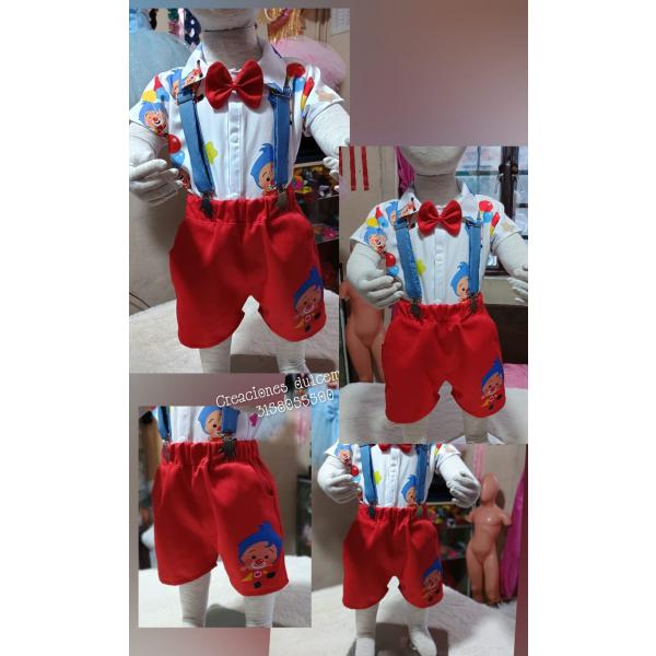 Celebra su día especial con este adorable traje inspirado en el payaso Plim Plim. Este conjunto es personalizable para que tu pequeño tenga un estilo único y especial, perfecto para cualquier ocasión. ¡Es el atuendo perfecto para la fiesta de cumpleaños de tu pequeño o para una sesión de fotos temática! 🥳 El precio depende de las necesidades del cliente.