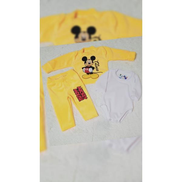 Un look mágico inspirado en el ratón más querido de Disney. Este set con camiseta de Mickey, pantalón y body es ideal para que tu pequeño luzca encantador en paseos, reuniones familiares o sesiones de fotos. 📏 Disponible en tallas desde la 0 (0 a 6 meses) hasta la 8 (5 a 6 años). 🎨 Personalizable para que tu bebé brille en cada ocasión. El precio depende de las necesidades del cliente.