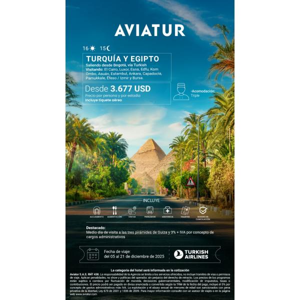 TIQUETE AEREROTURKISH AIRLINESEL CAIROESTAMBULALOJAMIENTOTARJETA DE ASISTENCIATEMPLOFALUCA