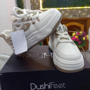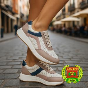 Modernos y versátiles, estos tennis son un imprescindible para cualquier look. Confeccionadas en tonos blancos y grises, destacan por sus detalles metálicos en dorado y plateado con un sutil estampado de serpiente, que les da un toque de sofisticación. Su diseño de plataforma ancha y cordones blancos no solo ofrece un look audaz, sino también una gran comodidad para caminar todo el día. Talla 38 nacional.
