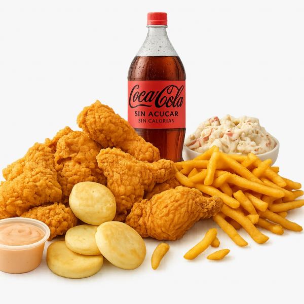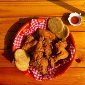 1/2 Pollo Apanado + 3 Arepas + Miel Para compartir o quedártelo todo tú