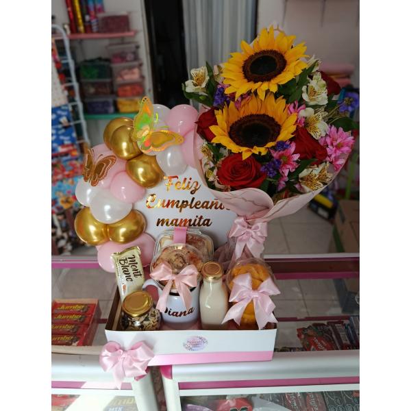 anchetasancheta personalizadadetallesdetalles personalizadosregalosbouquetancheta con floresfloresgirasolesrosasdesayuno sorpresadulcesDesayuno sorpresa