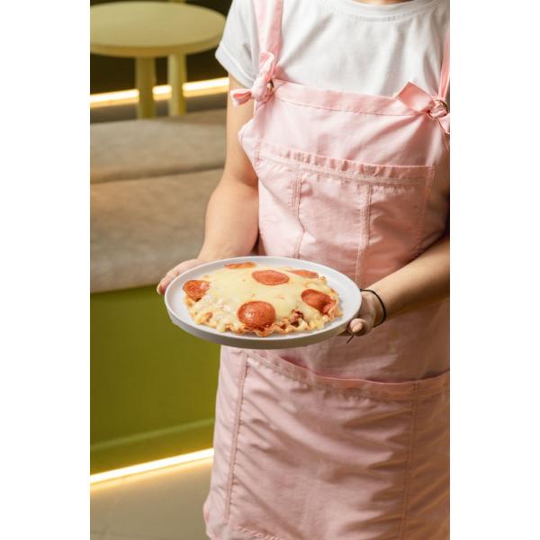 Waffle con salsa de tomate, queso mozzarella y pepperoni.Acompañado de papas en cubo o ensalada de la casa.