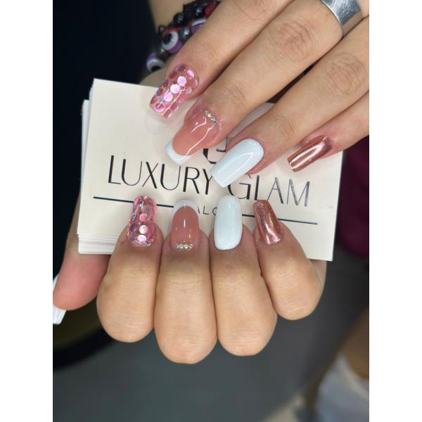 💅 Uñas en semi permanente con diseño personalizado, creadas por Sandra Cardona para resaltar tu estilo con glamour y elegancia. Cada detalle se adapta a ti, con un acabado impecable y duradero. Precio base desde $40.000, ajustado según tus necesidades. ✨