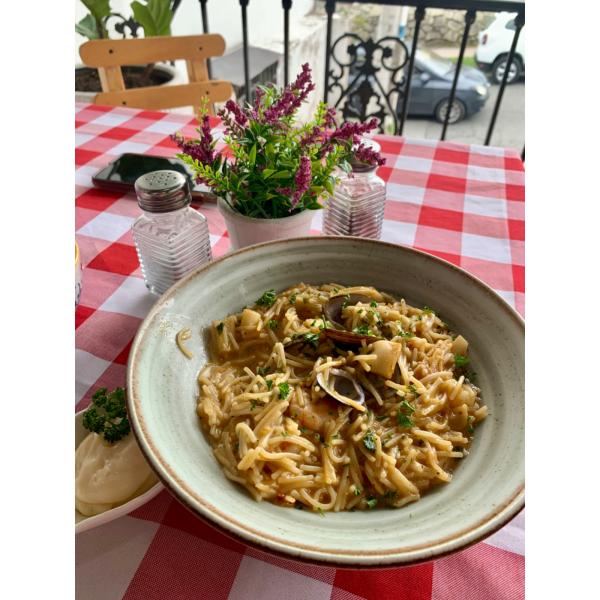 Plato catalán con fideos y productos de mar