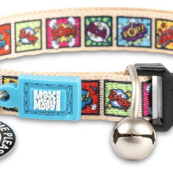 El collar Max & Molly Original Comic para gatos ofrece comodidad, ligereza y seguridad gracias a su cierre antiasfixia y campana. Incluye un código GOTCHA! único para registrar a tu mascota y facilitar su localización en caso de pérdida, combinando estilo, durabilidad y protección.