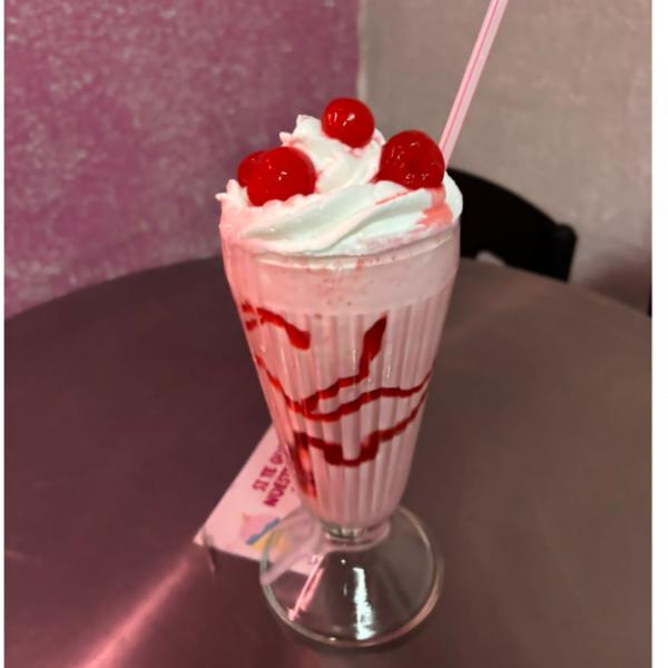 La malteada perfecta: espesa, fría y vibrante. Base de helado de fresa, decorada con sirope y cerezas enteras. El clásico que refresca tu alma. Pídela con el helado base de tu preferencia.