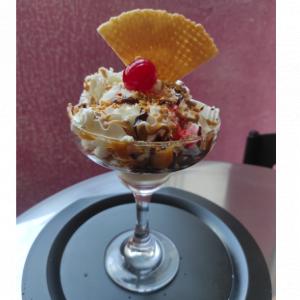 La máxima expresión del sabor. Combina nuestro cremoso helado base con tu elección de frutas, salsas vibrantes (como frutos rojos o caramelo), y una generosa porción de crema batida. Termina tu creación con toppings crocantes y un barquillo. ¡Diseña tu propia realeza de postre! El precio varía según el tamaño y los ingredientes que elijas.