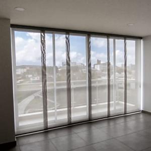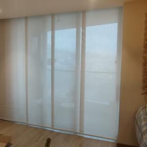 PANEL JAPONÉS: Sistema de lienzos verticales en tela que se deslizan suavemente a lo largo de canales paralelos en un riel de aluminio con diversas opciones de apertura. Puede ser motorizado o manual. El precio depende de las necesidades del cliente.