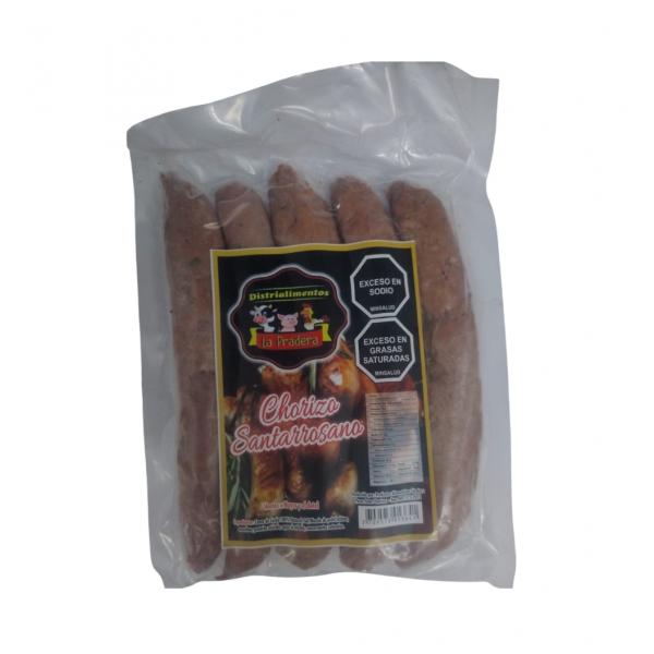 Chorizo Santarrosano La Pradera ideal para asados, desayunos o recetas típicas, su textura jugosa y su aroma inconfundible harán que todos quieran repetir.