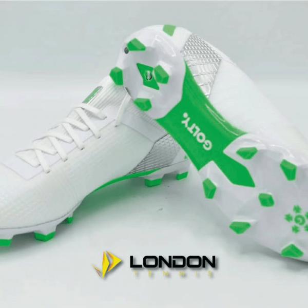🥅 El Toque Clásico para un Rendimiento Brillante ✨ Limpieza, estilo y rendimiento se unen en estos guayos Golty en blanco puro con detalles verdes. Diseñados para jugadores que buscan ligereza y un ajuste perfecto para dominar el partido con elegancia.