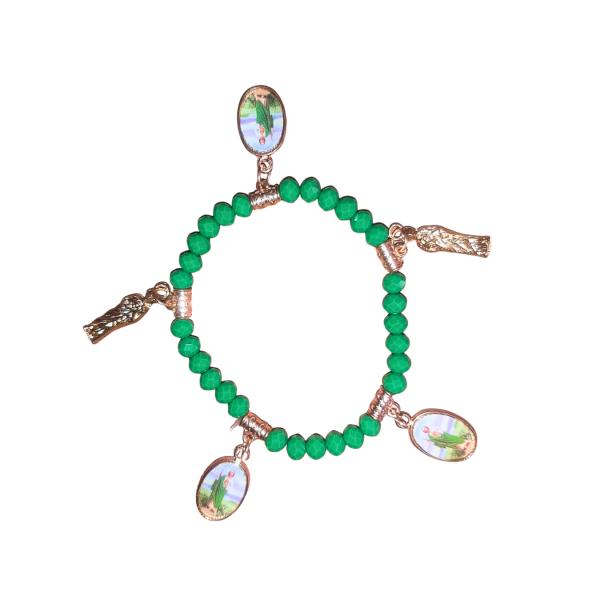 Elegante pulsera de cuentas verdes con dijes ✨. Llévala contigo, elige el diseño que más te guste.