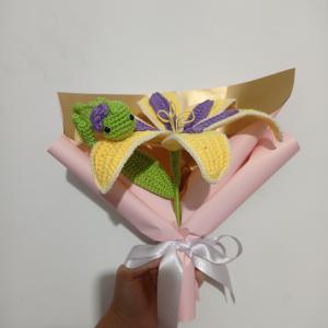 🌼 Flor de Rapunzel con Pascal tejido a mano en crochet, inspirada en la mágica historia de Enredados. Hecha con amor y cuidado en cada detalle, combina la icónica flor dorada con el simpático camaleón Pascal. Ideal para regalar o decorar con un toque de fantasía. 🎁 Incluye empaque personalizado y nota pequeña escrita a gusto, perfecta para un detalle lleno de encanto.