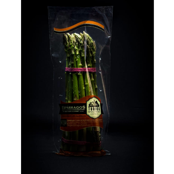 Ofrecemos nuestro Esparrago en mazos de 500grms en bolsa protectora, nos reconoces por nuestra calidad, frescura y empaque color naranja.
