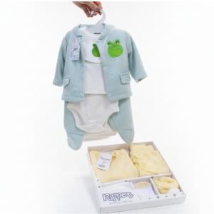 Elegante conjunto en tono amarillo pastel, perfecto para la delicada piel del bebé. Incluye suéter, pantalón, body, gorrito y calcetines, todo en una bonita caja de regalo. El precio depende de la Talla.